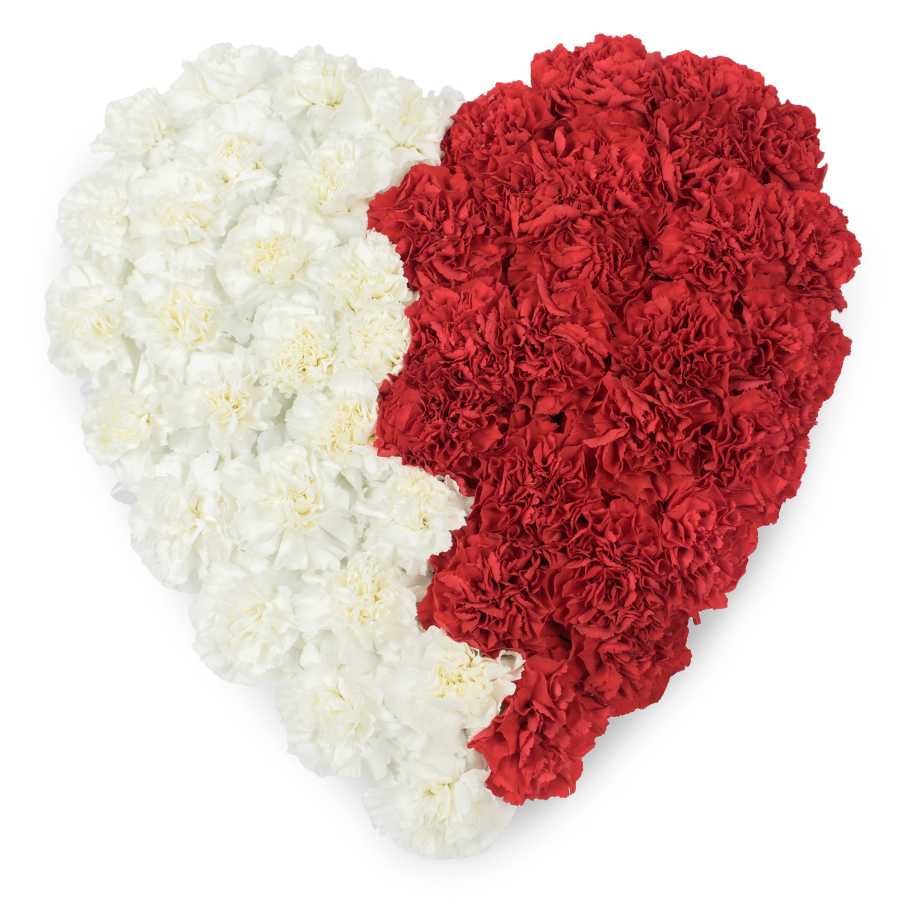 Celebrate special moments with our Beautiful Heart-Shaped Carnations Arrangement, designed by Handy Flowers. This elegant bouquet combines white and red carnations to create a visually captivating display that conveys heartfelt emotions.